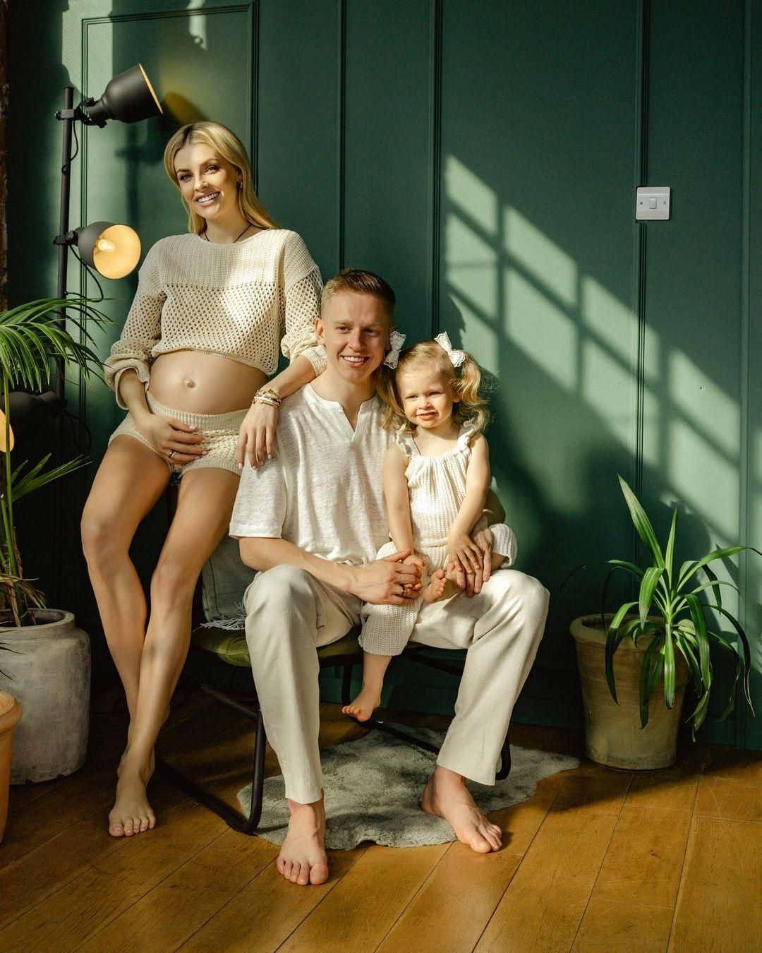 На первой фотографии дочь лидера Арсенала держит в руках УЗИ снимки братика или сестрички, пока ее отец целует маме беременный животик. А на втором фото Александр позирует в окружении своих девушек.