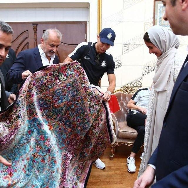 Также португальский форвард успел получить подарок с местным колоритом – ковер, в котором поклонники увидели сходство с волшебным предметом сказочного Алладина.
