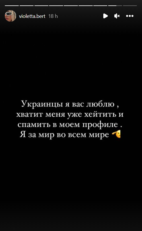 Модель не замедлила с ответом в своем Instagram : "Украинцы, я вас люблю. Хватит меня уже хейтить и спамить в моем профиле. Я за мир во всем мире".