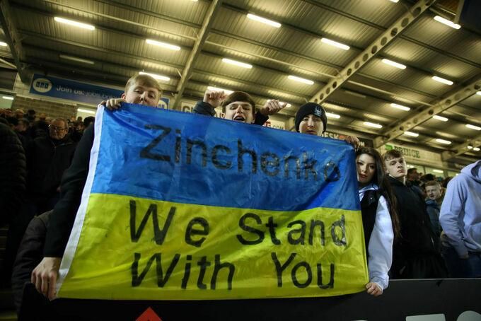 Однако главные моменты этого матча состоялись еще до начала. Экс-игрок Шахтера Фернандинью надел капитанскую повязку Зинченко и Александр вывел команду на поле с украинским флагом в руках. Многие болельщики на трибунах тоже подняли сине-желтые флаги в поддержку Украины.