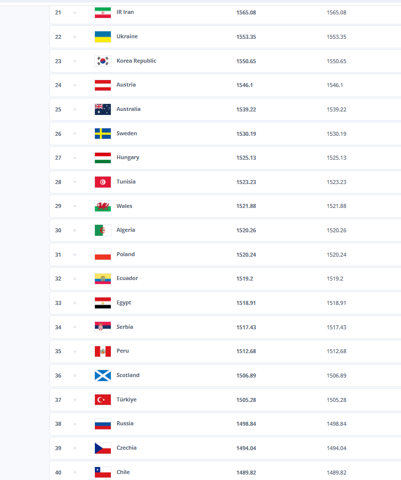 ФИФА на своем сайте презентовала обновленный рейтинг сборных. Украина в декабре матчей не проводила, поэтому сохранила в нем предыдущую позицию и находится на 22-й строчке (как и в ноябрьской вариации).