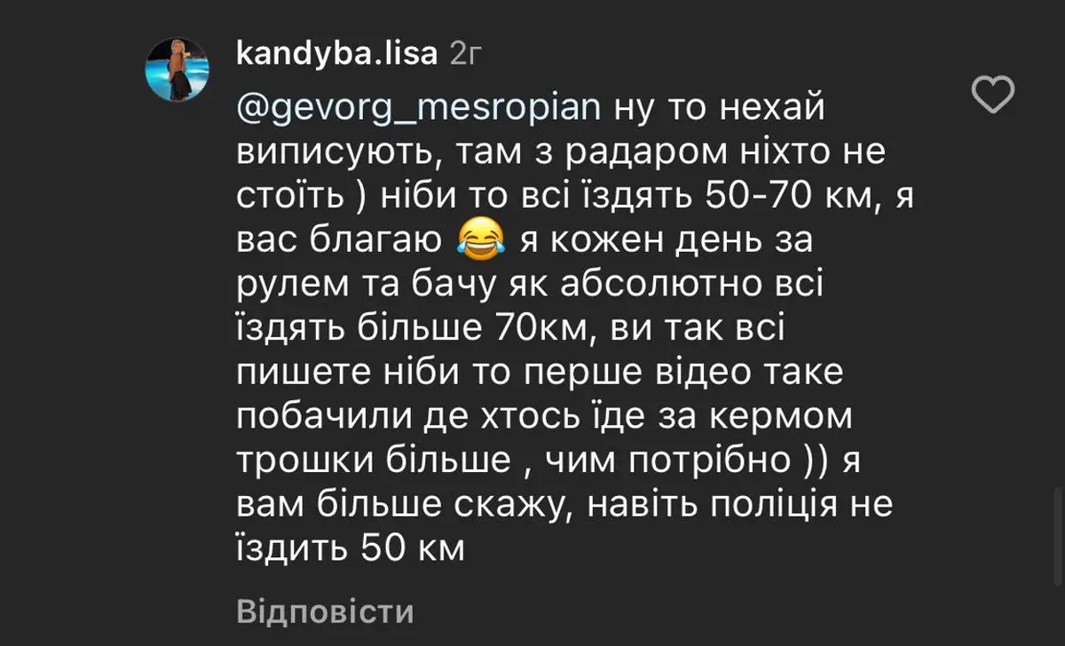 "Когда мне подмигнула BMW аварийкой. Вообще, такое редко бывает сейчас, я езжу спокойно сейчас", – подписала кадры Кандыба. Видео перепостил у себя Telegram-канал Киев Оперативный, где фолловеры массово начали критиковать Лизу за провоцирование аварийной ситуации на дороге.