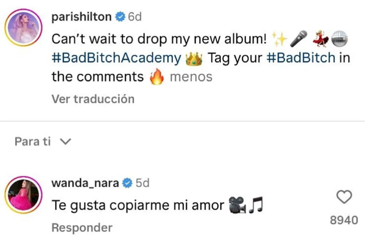 Как выяснилось, Ванда также имеет в своем репертуаре песню с похожим названием "Bad Bitch". Поэтому аргентинка решила, что Пэрис Хилтон украла у нее идею.