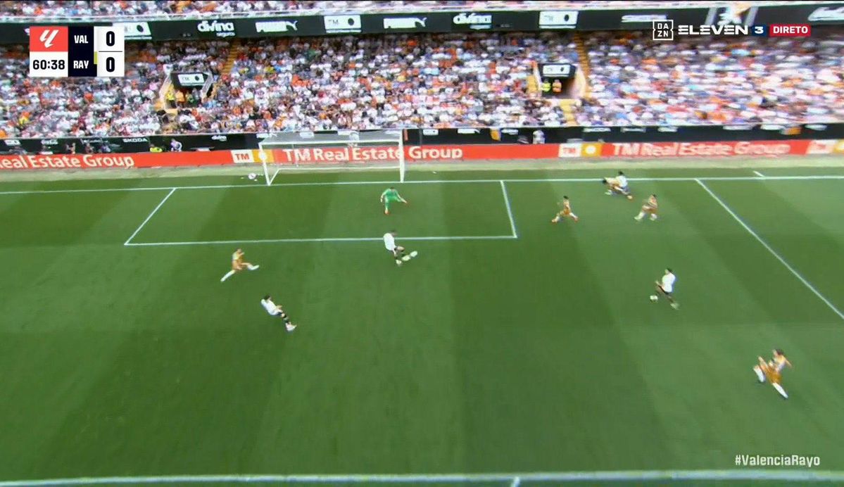 Валенсия ответила ударом Серхи Каноса, однако его пушку нейтрализовал голкипер Райо Вальекано. На перерыв команды ушли без голов.