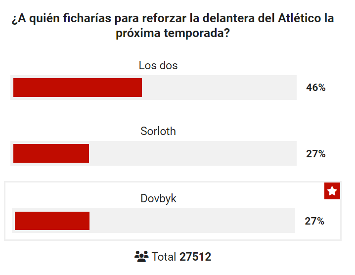 На своем сайте издание Marca попросило фанатов ответить на вопрос: "Кого бы вы подписали, чтобы усилить Атлетико в следующем сезоне?". Большинство болельщиков хотели бы видеть в составе любимой команды обоих игроков – за такой вариант проголосовал 41% болельщиков. Украинца в составе Атлетико хотят видеть 31% респондентов, а норвежца – 29%.