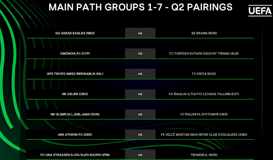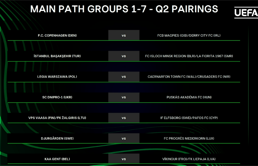 По итогам жеребьевки житомирский клуб сыграет против представителя Словении Олимпии Любляны. Первая игра пройдет на выезде. Зато днепряне поборются за путевку в следующий раунд с венгерским клубом Академия Пушкаша. Стартовая игра будет номинально домашней.