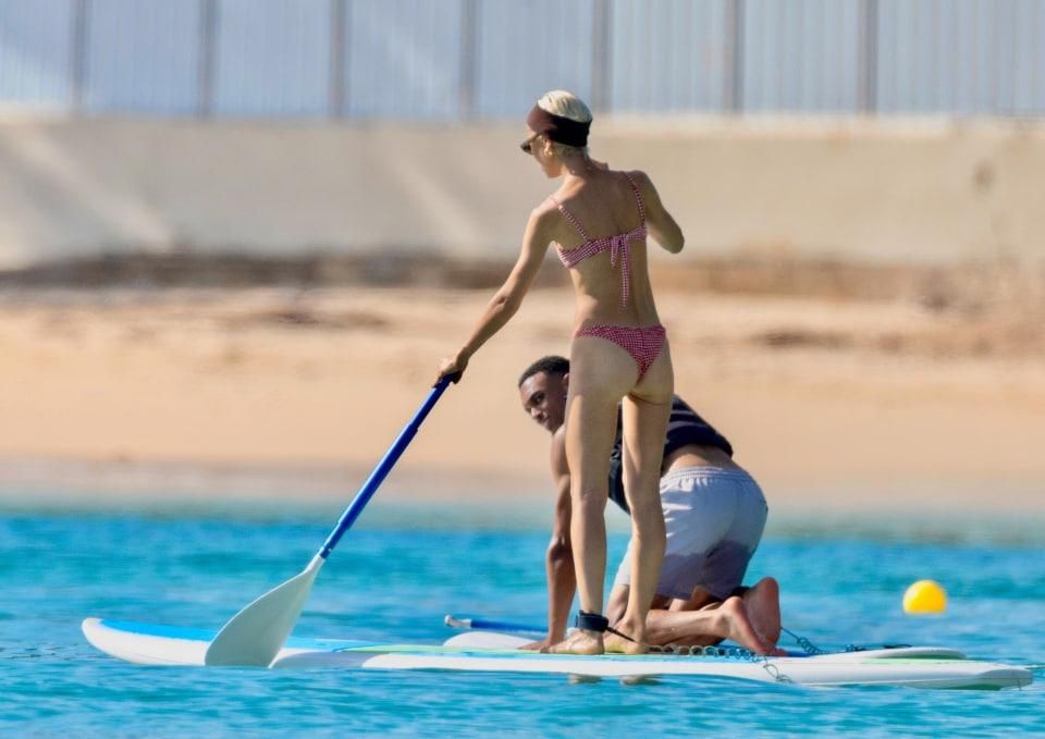 Пара поехала на пляж. В сети появились милые фото, где они обнимались, наслаждаясь прогулкой у воды, а потом решили покататься на доске для гребли. Айрис была одета в красно-белое клетчатое бикини и улыбалась.