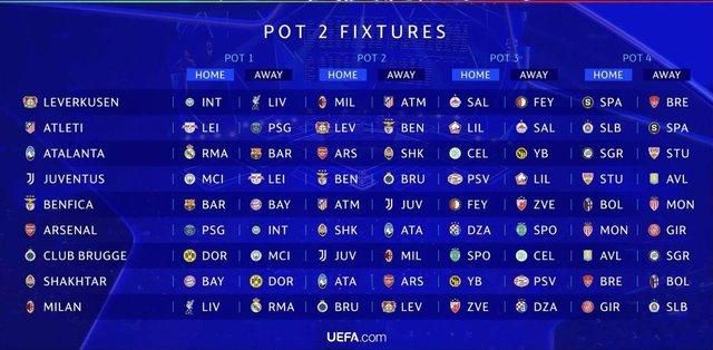 Шахтер дома сыграет против Баварии, Аталанты, Янг Бойз, Брест. На выезде "горняки" встретятся с Боруссией Дортмунд, Арсеналом, ПСВ и Болоньей.