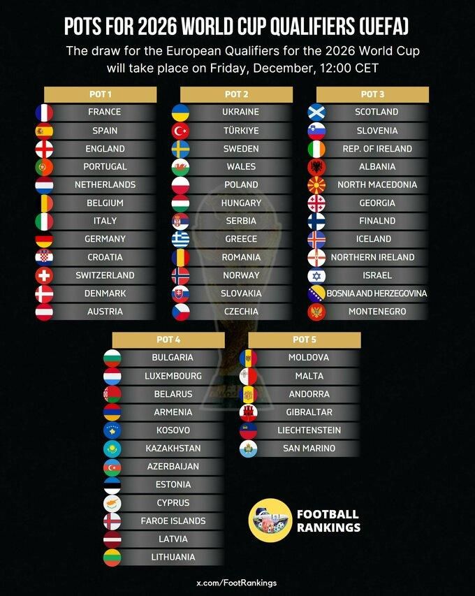 Корзины посева перед жеребьевкой квалификации ЧМ-2026.
