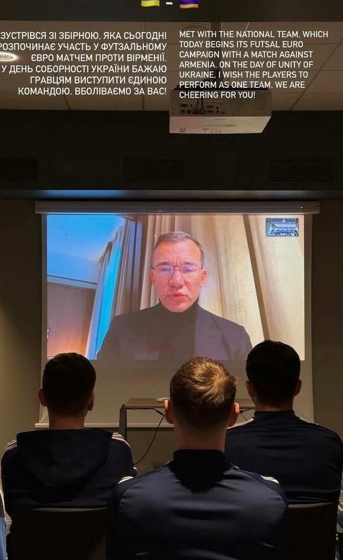 "Встретился со сборной, которая сегодня начинает участие в футзальном Евро матчем против Армении. В день соборности Украины желаю игрокам выступить единой командой. Болеем за вас", – написал Шевченко в Инстаграм-сторис.