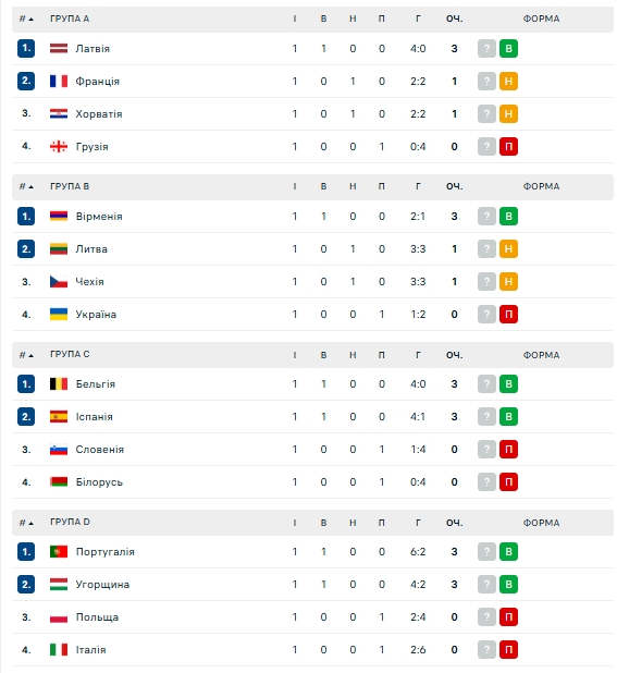 Евро-2026 по футзалу. Групповой этап. Результаты первого тура.
