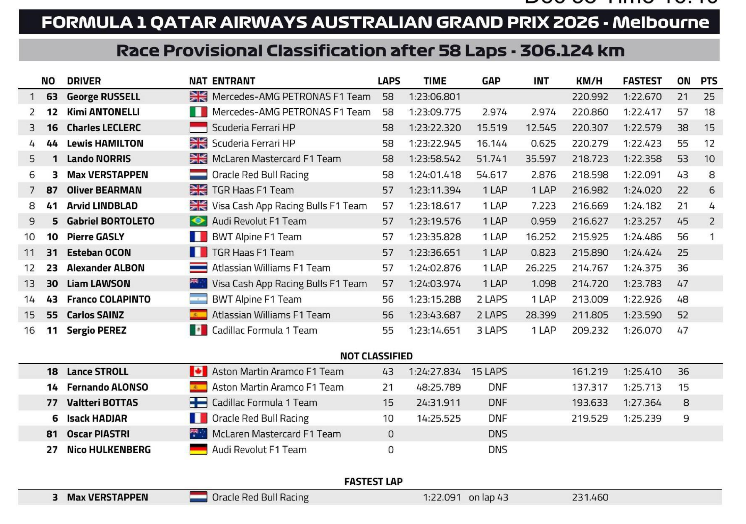 Победитель прошлого сезона Ландо Норрис стал лишь пятым, а его звездный оппонент Макс Ферстаппен финишировал шестым.