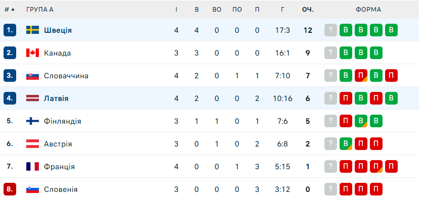 В третьем периоде хозяева льда добили своего соперника, забив еще четыре раза. После этого поединка Швеция с абсолютным результатом расположились на вершине турнирной таблицы группы А. Латвия пока на четвертой строчке и сохраняет шансы побороться за плей-офф турнира с Австрией, Финляндией и Словакией.