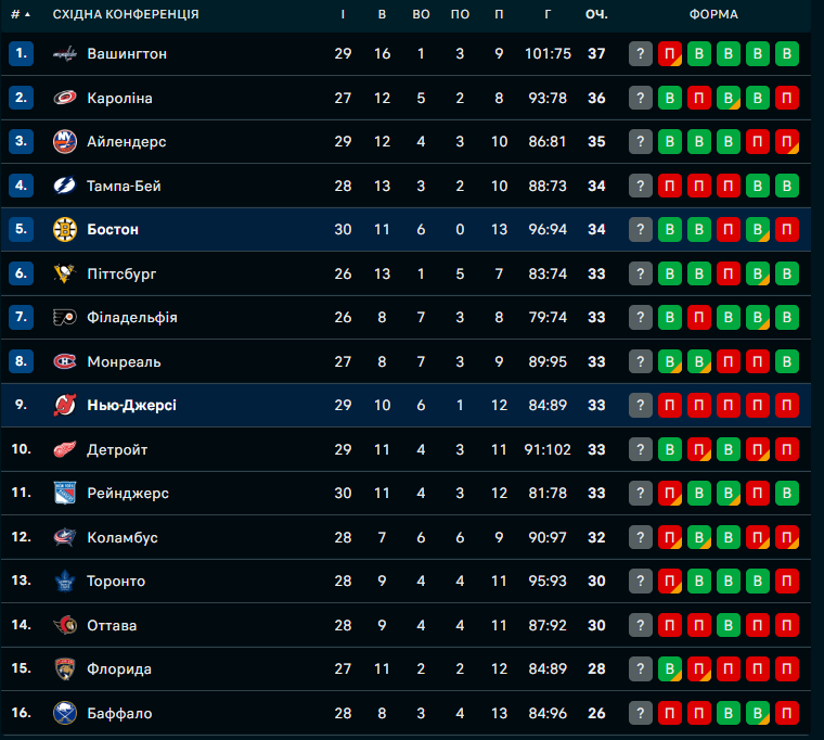 Среди других результатов отметим победу Айлендерс над Тампой-Бэй (2:0) и подъем в топ-3 Восточной конференции, а также поражение Нью-Джерси от Бостона (1:4). Дьяволы проиграли 7 из 10 последних матчей и опустились на 10-е место на Востоке. На Западе лидирует Колорадо.