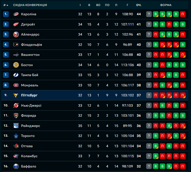 Питтсбург – Эдмонтон – 4:6 (1:2, 1:2, 2:2)