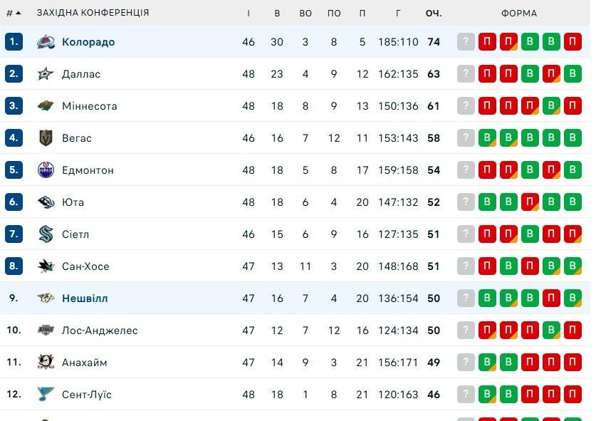 Колорадо с канадцем украинского происхождения Кейлом Макаром потерпело неожиданное поражение от Нэшвилла – 3:7. Несмотря на то, что Эвеланш проиграли второй поединок подряд, все же удержались на вершине турнирной атблицы Запада.
