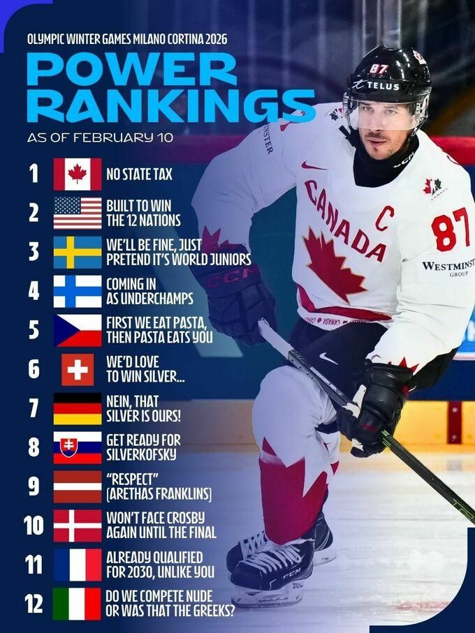 Сегодня на хоккейном турнире Олимпиады 2026 сыграют два матча в группе В: Словакия – Финляндия (17:40) и Швеция – Италия (22:10). Сборная Канады стартует 12 февраля поединком против Чехии.