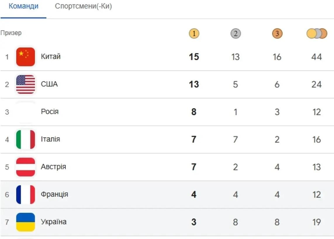 Сборная Украины на Играх 2026 завоевала 19 комплектов наград (3 золотых, 8 серебряных и 8 бронзовых). Больше наград только у Китая и США. Однако в медальном зачете прежде всего учитывают золотые и серебряные награды, поэтому по этому показателю Украина уступила еще четырем командам. Поэтому заняла седьмое место в общем зачете.