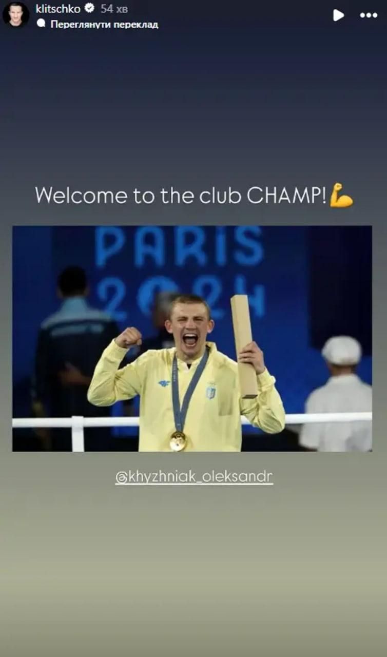 "Поздравляю в клубе, чемпион", – написал Владимир Кличко на своей странице в Instagram.