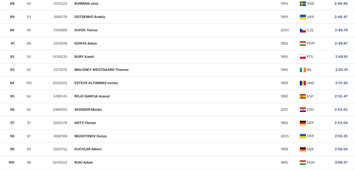 К сожалению, преодолеть квалификацию украинцам не удалось ни среди женщин, ни среди мужчин. В женских соревнованиях украинки заняли все последние три места: Виктория Олех стала 65-й, тогда как Анастасия Никон и София Шкатула – 66-й и 67-й соответственно.