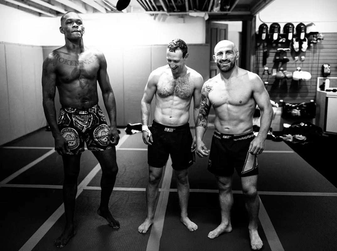 Чемпионы промоушена Исраэль Адесанья и Алекс Волкановский прилетели в Северную Калифорнию после туринра UFC 290 в Вегасе. Там они потренировались с Марком, чтобы подготовить его к возможному противостоянию с владельцем Twitter Илоном Маском. На кадрах заметно, что все трое были потными и истощенными.