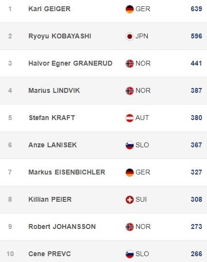 Следом за японцем расположились трое норвежцев. Хозяин трамплина и лидер общего зачета Карл Гайгер стал только пятым.