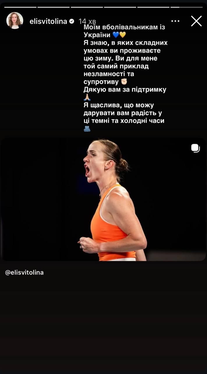 Напомним, в 1/8 финала Открытого чемпионата Австралии Свитолина в двух сетах победила российскую теннисистку Мирру Андрееву, которая занимает седьмое место в мировом рейтинге WTA. В четвертьфинале Australian Open украинка сыграет против Коко Гофф.