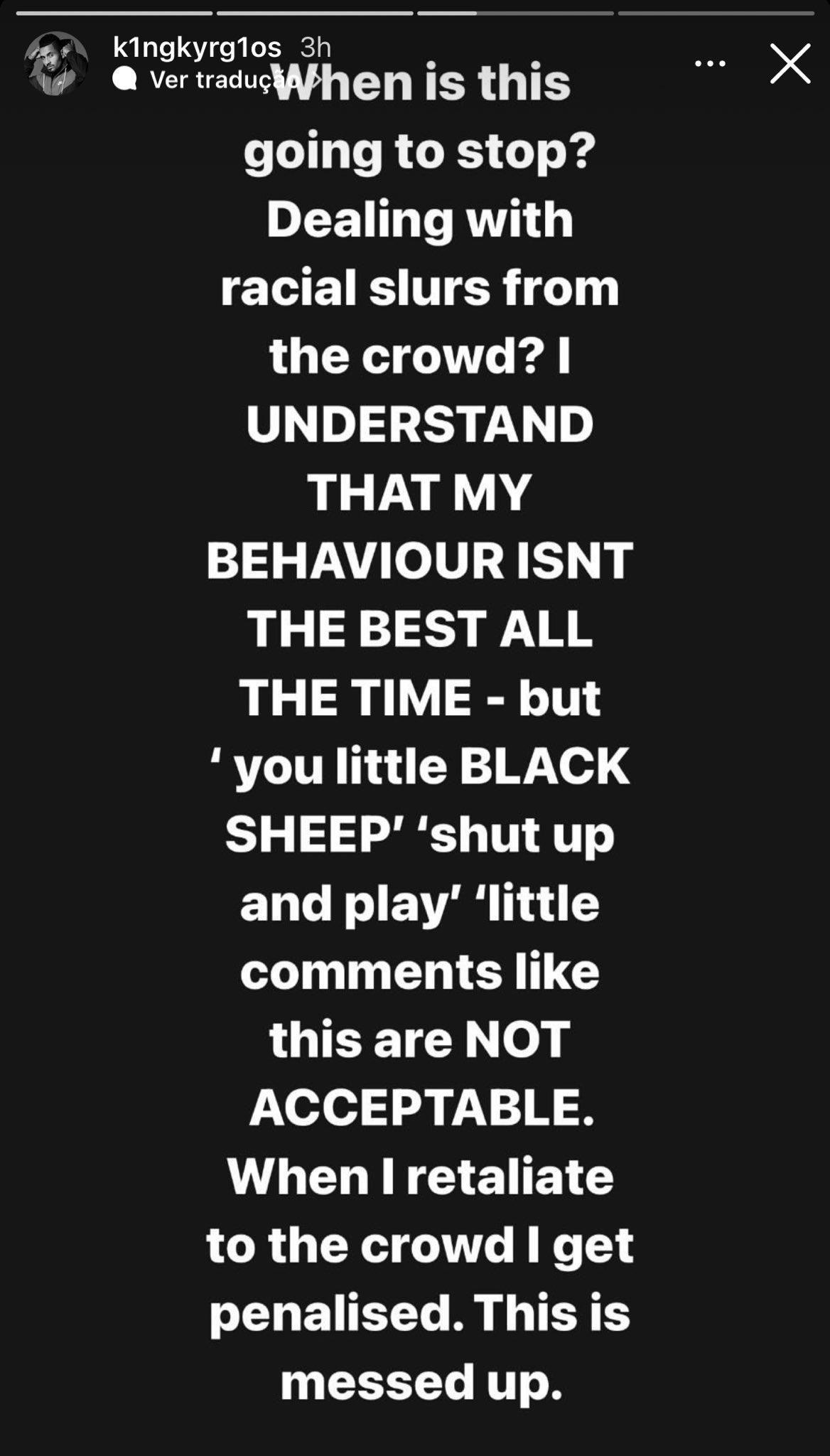 "Когда это прекратится? Мне приходится иметь дело с рашистскими оскорблениями. Я понимаю, что вел себя далеко не лучшим образом. Но такие комментарии, как "заткнись и играй, маленькая черная овца", неприемлемы. Когда я отвечаю на них, меня наказывают", – написал Кириос в Instagram.