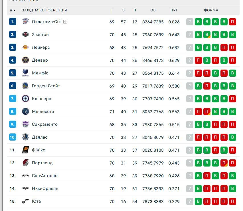 Оклахома – Філадельфія – (42:26, 28:30, 33:18, 30:26)