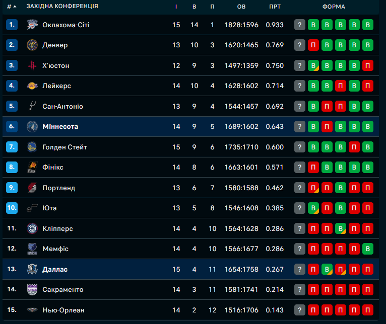 Міннесота – Даллас – 120:96 (34:21, 27:23, 37:22, 22:30)