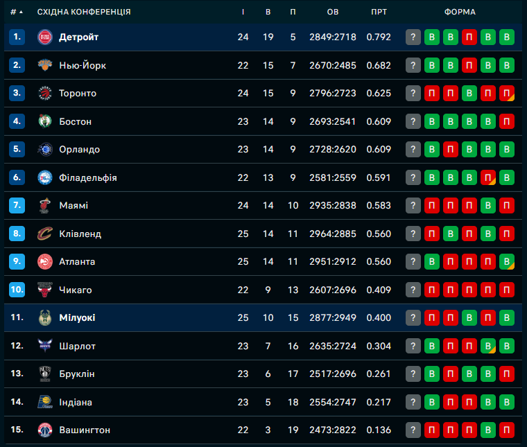 Детройт продовжує домінувати у Східній конференції, чергова поразка Мілуокі (124:112). Лідер Пістонс Кейд Каннінгем зміг оформити черговий дабл-дабл: 23 очки та 12 передач. Одразу 7 гравців Детройта набрали 10 очок та більше. Мічіганці лідирують на Сході з 19 перемогами у 24 матчах. Мілуокі йде 11-м поза зоною плей-ін.