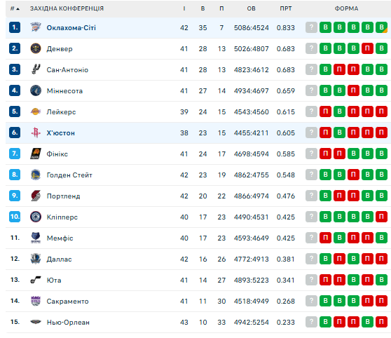 Х’юстон – Оклахома – 91:111 (19:21, 29:34, 27:22, 16:34)