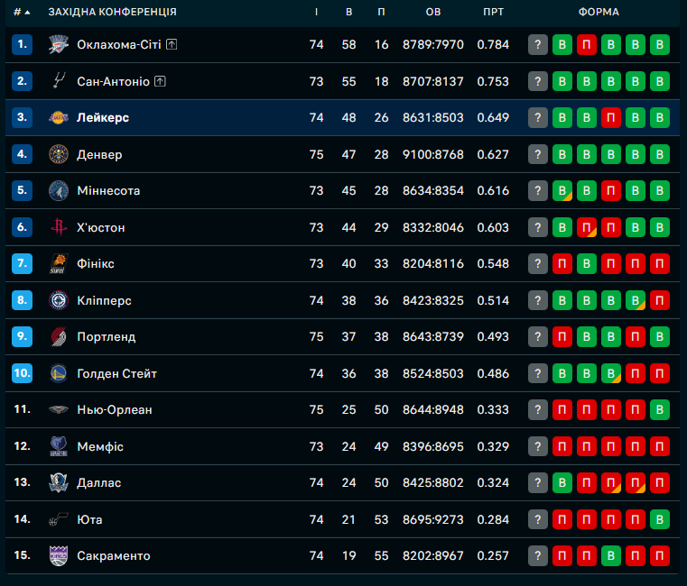 Лейкерс здолали Бруклін (116:99). Суперником "озерників" став аутсайдер Сходу Бруклін. Лідер каліфорнійців Лука Дончіч знову привів свою команду до перемоги. Словенець набрав 41 очко та додав 8 підбирань. А ось 41-річний Леброн Джеймс провів скромний (за своїми мірками) матч: 14 очок та 8 передач. Лейкерс після перемоги випереджають Денвер та йдуть третіми у Західній конференції.