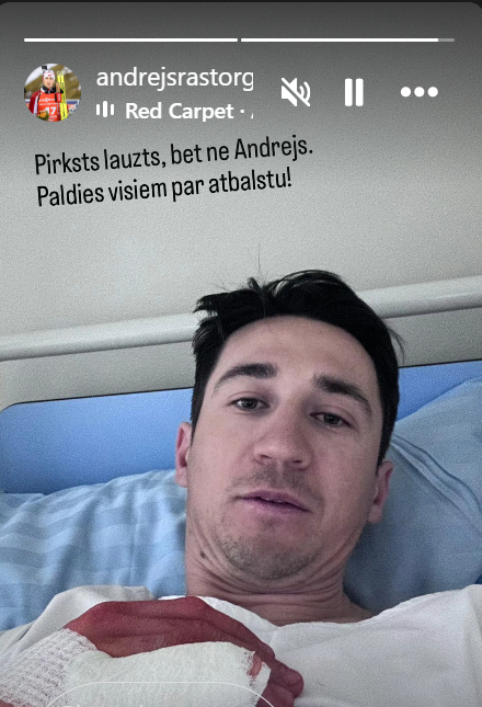 Палець зламаний, але не Андрейс. Дякую всім за підтримку!", – написав Расторгуєвс.