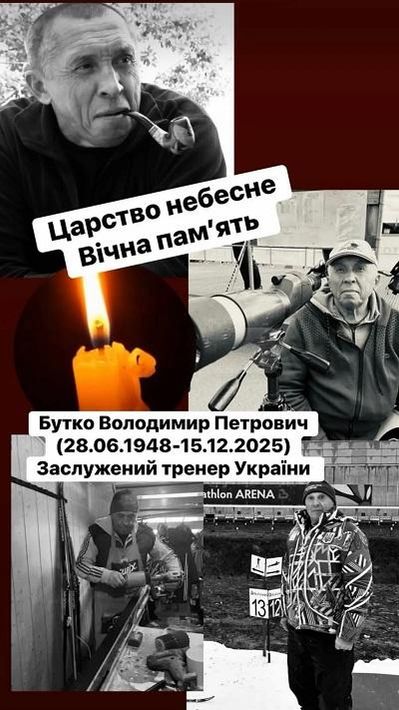 15 грудня не стало заслуженого тренера України з біатлону Володимира Бутка. Про це повідомила у своєму Instagram біатлоністка збірної України Олена Городна.