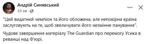 Андрій Синявський, журналіст Європейської правди, підкреслює важливий висновок авторитетної британської газети The Guardian.