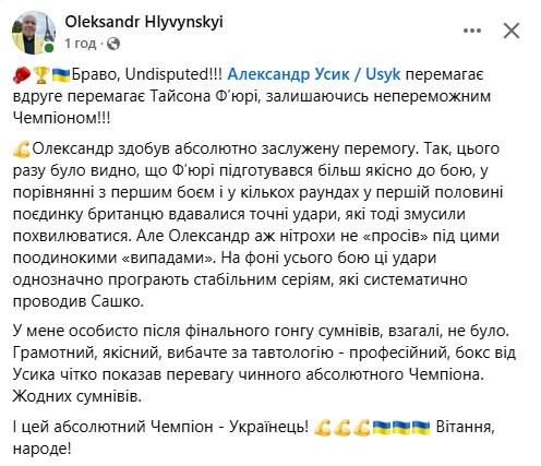 Колишній прес-аташе збірної України з футболу Олександр Гливинський запевняє: сумнівів щодо переможця після дванадцятого раунду в нього не було.