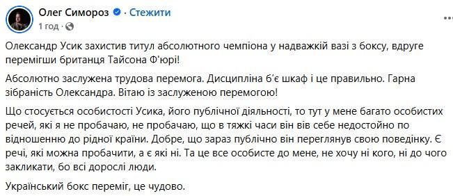 Усик оцінив свою перемогу над Ф'юрі в реванші: "Присвячую всім матерям України"