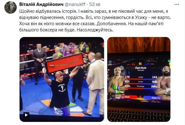 Маестро нокауту Володимир Кличко побував на місці подій і залишився вражений: "Вітаю, чемпіоне! Україні пощастило з тобою. Ти – справжній прапороносець нашої стійкості. Слава Україні!"