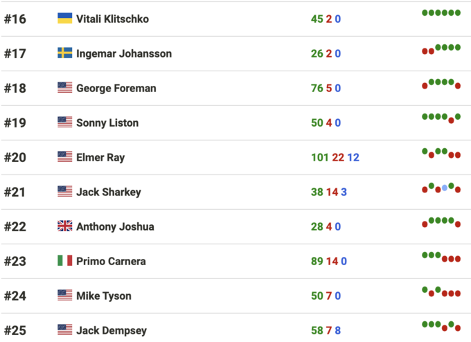 До слова, Ентоні Джошуа (22-е місце) випередив Майка Тайсона (24-а позиція).