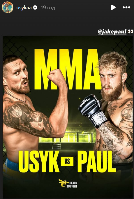 Потенційний бій між українцем та американцем може пройти за правилами ММА. Усик додав фото у Stories свого Instagram, тегнувши Джейка.
