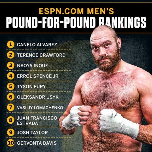 До слова, топ-10 виглядає так: Сауль "Канело" Альварес, Теренс Кроуфорд, Наоя Іноуе, Еррол Спенс, Тайсон Ф'юрі, Олександр Усик, Василь Ломаченко, Хуан Франциско Естрада, Джош Тейлор, Джервонта Девіс.