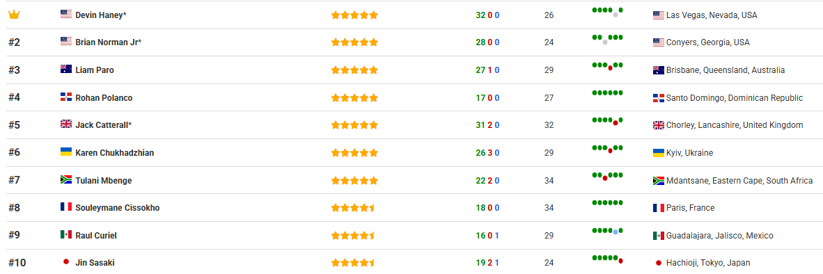 Топ-10 боксерів напівсередньої ваги за версією BoxRec: