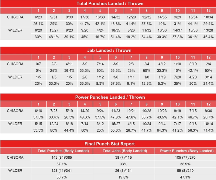 Чісора створив Вайлдеру серйозні проблеми й навіть декілька разів мав шанс оформити нокаут. За статисткою, британець повністю перебив візаві.
