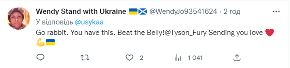 "Кролик йде по тебе, пузатий", – підписав світлину український чемпіон в надважкій вазі за версіями WBA, WBO, IBF, IBO та The Ring. Звернення Олександра викликало бурхливу реакцію у фанів, деякі з них порівнюють можливе протистояння Усика та "Циганського короля" з біблійним поєдинком Давида й Голіафа: "Вперед, кролику. У тебе все вийде. Ти зможеш. Побий пузатого. Надсилаю тобі любов", "Давид проти Голіафа", "Ти зможеш перемогти Голіафа".