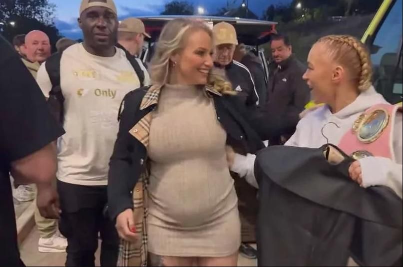 Бріджес, яка вболівала за подругу, була одягнута в обтислу сукню, яка не приховувала вагітного животика 37-річної боксерки. У соціальних мережах прихильники активно вітають майбутню матусю.
