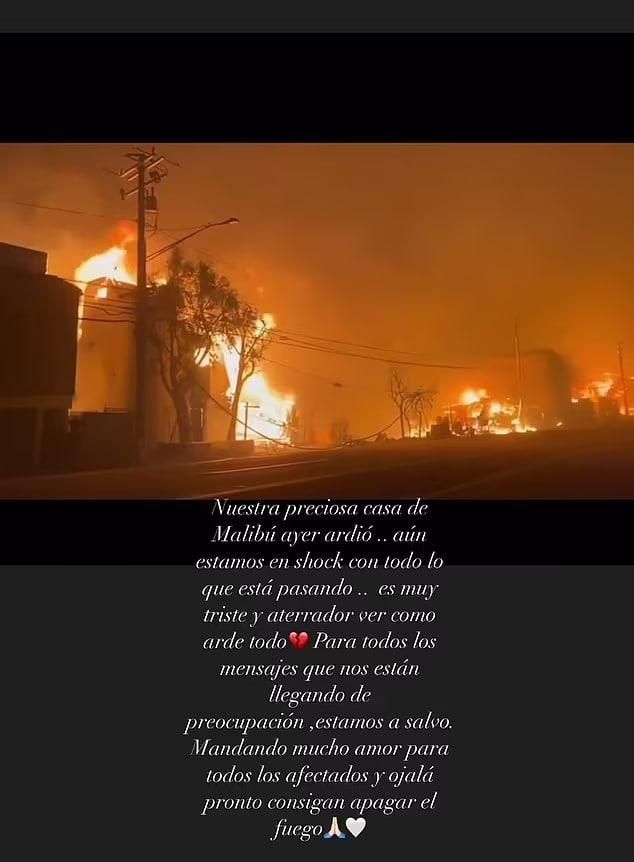 "Наш чудовий дім у Малібу вчора згорів... Ми досі в шоці від того, що відбувається. Дуже страшно бачити, як все горить. Всім, хто хвилюється за нас – ми у безпеці. Надсилаю свою любов усім постраждалим та сподіваюсь, що пожежі невдовзі загасять", – написала Канібано.