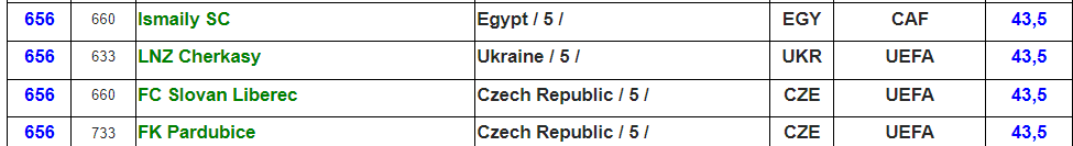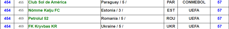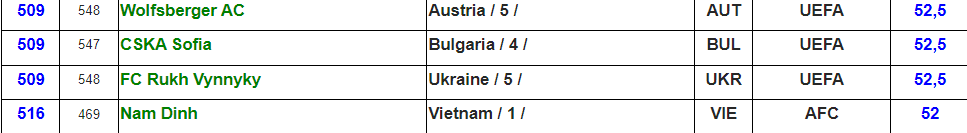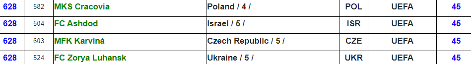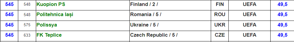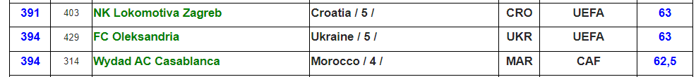 Українські клуби до топ-100 рейтингу не потрапили. Шахтар посів 130-ту позицію, Динамо лише 146-ту. У списку є й інші клуби УПЛ: Олександрія, Кривбас, Рух, Полісся, Зоря та ЛНЗ.