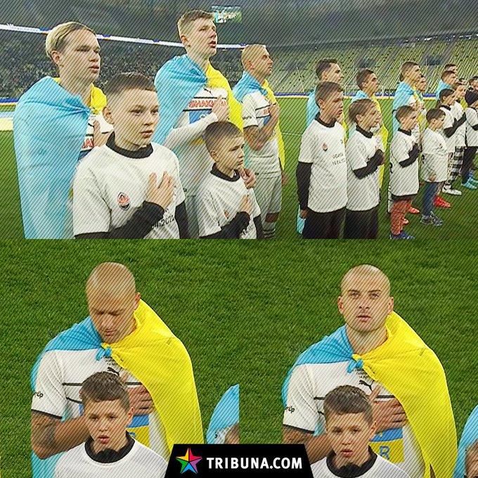 Вже традиційно для подібних матчів футболісти вийшли на поле загорнутими у синьо-жовті прапори. Зі стягом виходив і Ярослав Ракицький, що поки тимчасово повернувся до складу "гірників". Перед поєдинком вже екс-захисник Зеніта навіть співав гімн України, чого ніколи не робив під час своїх виступів за національну команду.