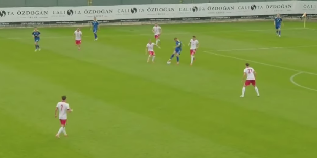 "Синьо-жовті" повністю контролювали гру в першому таймі й зуміли першими відкрити рахунок. Ефектними індивідувальними діями відзначився вихованець Шахтаря Богдан В'юнник, який наразі захищає кольори польської Лехії. Форвард змістився в центр й майстерно пробив повз голкіпера.